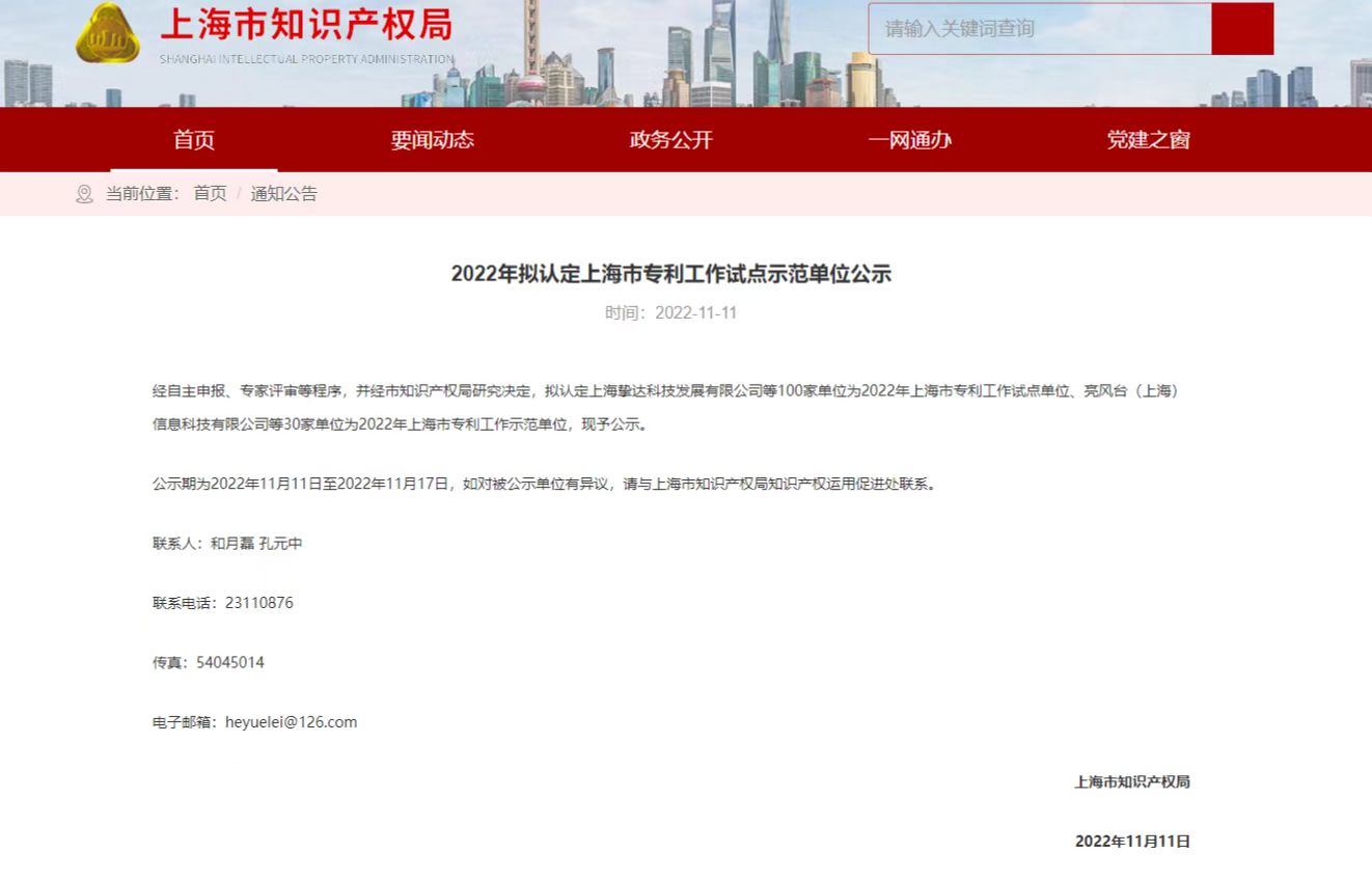 根據(jù)《上海市知識產(chǎn)權(quán)局關(guān)于申報2022年上海市企事業(yè)專利工作試點示范單位的通知》(滬知局促〔2022〕21號)的要求,經(jīng)評審,公司獲評上海市專利工作示范單位。